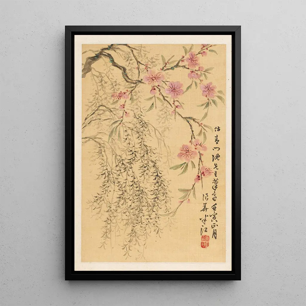 Schilderij Kersenbloesem en wilgen - Okada Hankō | Kunstdruk