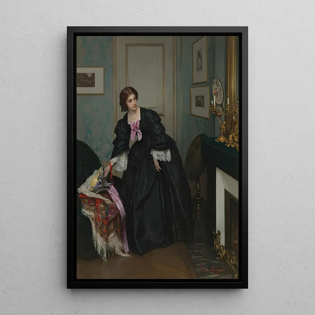 Kijk op de klok: een delicate melancholie In deze kunstdruk van Kijk op de klok, roept Gustave Léonard de Jonghe een sfeer op die doordrenkt is van zachtheid en melancholie. De compositie benadrukt een contemplatieve vrouw, verdiept in haar gedachten, terwijl een gedimde verlichting de scène badend in een zachte gloed. De pastelkleuren en verfijnde details creëren een intieme, bijna dromerige sfeer. De techniek van Jonghe, die realisme en gevoeligheid combineert, stelt je in staat de emotie te voelen die uit dit schilderij straalt, en nodigt de kijker uit tot een moment van reflectie. Gustave Léonard de Jonghe: een kunstenaar uit de 19e eeuw Gustave Léonard de Jonghe, actief in de 19e eeuw, staat bekend om zijn werken die de psychologie van de personages verkennen. Geïnspireerd door de symbolistische beweging, richt hij zich op thema's van eenzaamheid en introspectie. Zijn schilderijen, vaak bevolkt door vrouwelijke figuren, getuigen van een esthetisch en emotioneel onderzoek. De Jonghe, hoewel minder bekend dan andere kunstenaars van zijn tijd, heeft in staat geweest om levensmomenten vast te leggen met een diepgang die nog steeds het hedendaagse publiek raakt. Een decoratief kunstdruk met vele voordelen Deze kunstdruk van Kijk op de klok is een waardevolle aanvulling op je interieurdecoratie. Of het nu in een woonkamer, slaapkamer of kantoor is, dit schilderij brengt een vleugje elegantie en sereniteit. De afdrukkwaliteit garandeert een perfecte fideliteit aan de nuances en details van het originele werk. Door deze doek in je ruimte te integreren, creëer je een rustgevende sfeer, terwijl je je omgeving verrijkt met een kunstwerk dat vol emotie en schoonheid is.