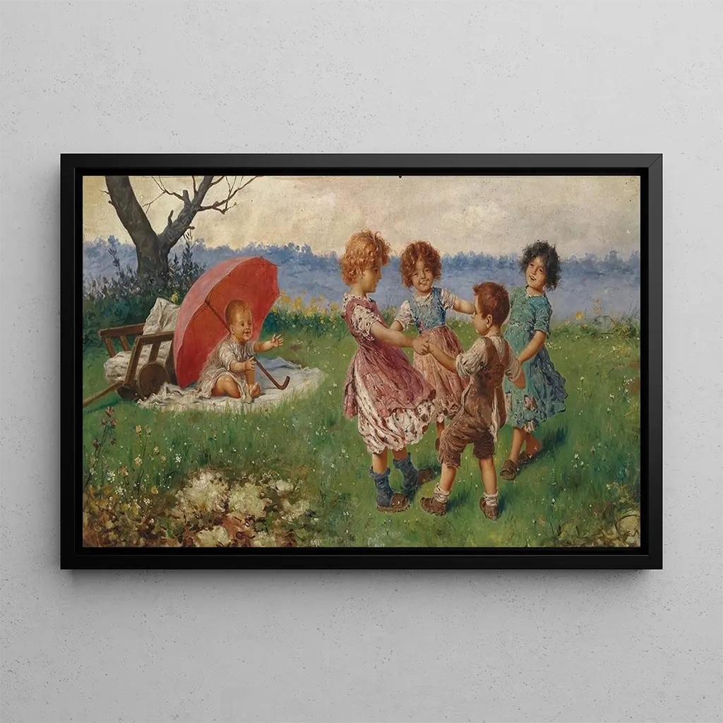 Kinderen die spelen: een scène van vreugde en onschuld In de kunstdruk Kinderen die spelen van Federico Oliva vangen de levendigheid van de kleuren en de lichtheid van de lijnen de essentie van de kindertijd. De kinderen, verdiept in hun spel, lijken op te bloeien in een universum waar onschuld heerst. De techniek van de kunstenaar, die zachtheid en precisie combineert, creëert een warme en uitnodigende sfeer. De tinten blauw en groen roepen de natuur op, terwijl de lichtstralen de vrolijke gezichten van de jonge hoofdrolspelers verlichten. Dit kunstwerk nodigt uit tot contemplatie en nostalgie, en herinnert aan de eenvoudige en kostbare momenten van de jeugd. Federico Oliva: een meester in de voorstelling van kinderen Federico Oliva, een kunstenaar uit de 19e eeuw, wordt erkend om zijn vermogen om de puurheid van de kindertijd vast te leggen in zijn werken. Geïnspireerd door het romantisme, bevindt hij zich in een periode waarin kunst probeert diepe en authentieke emoties uit te drukken. Zijn schilderijen, vaak gericht op alledaagse thema's, weerspiegelen een bijzondere gevoeligheid voor kinderen en hun wereld. Als kunstenaar heeft Oliva zich weten te onderscheiden door zijn unieke stijl, die realisme combineert met poëtische accenten, waardoor hij een belangrijke figuur van zijn tijd is geworden. Een decoratief stuk met vele voordelen De kunstdruk Kinderen die spelen is een ideaal decoratief stuk voor diverse woonruimtes, of het nu in een woonkamer, een kinderkamer of een kantoor is. De kwaliteit van de afdruk en de trouw aan het originele werk garanderen een onmiskenbare esthetische aantrekkingskracht. Door dit schilderij in uw inrichting te integreren, brengt u een vleugje vreugde en lichtheid in uw interieur. De levendige kleuren en de uitdrukkingen van de kinderen creëren een dynamische en warme sfeer, waardoor deze doek een perfecte keuze is om elke kamer op te fleuren.