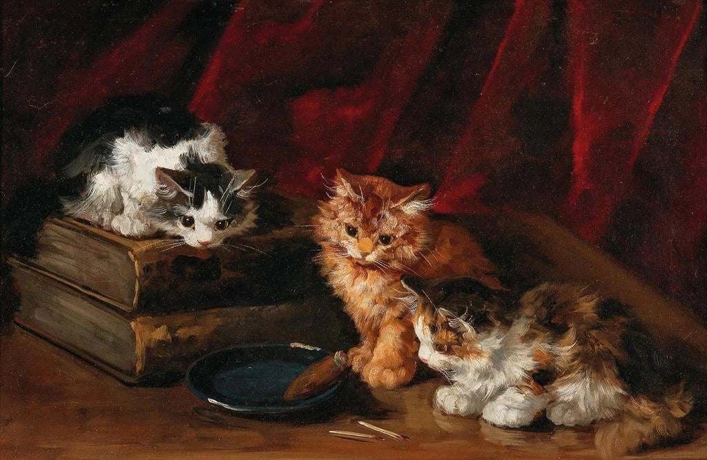 Verwarde kittens - Arthur Alfred Brunel de Neuville