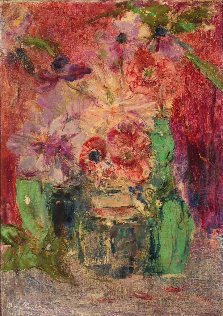 Kunstdruk | Klaprozen in een potje gember - Floris Verster
