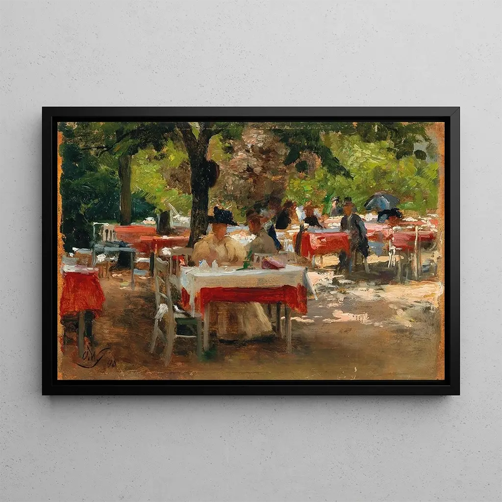 Ontbijt in Karlsbad: een scène van gezelligheid en zachtheid In dit werk dompelt Olga Wisinger-Florian ons onder in een intieme sfeer waar het zachte licht de gezichten van de genodigden streelt. De pastelkleuren, delicaat en warm, roepen een moment van delen op rond een ontbijt. De minutieuze details van de voorwerpen op de tafel, zoals porselein en fruit, voegen een vleugje realisme toe aan deze rustige scène. De harmonieuze compositie, gericht op de personages, nodigt de kijker uit om zich in dit levensmoment te verdiepen, waar de tijd lijkt stil te staan en de gezelligheid de boventoon voert. Olga Wisinger-Florian: een pionier van de Oostenrijkse kunstbeweging Geboren in 1844, is Olga Wisinger-Florian een iconische figuur van de Oostenrijkse kunst van de 19e eeuw. Geïnspireerd door de impressionistische beweging, ontwikkelt zij een unieke stijl die licht en kleur combineert met een bijzondere gevoeligheid. Haar carrière wordt gekenmerkt door exposities binnen de Weense Secession, een groep kunstenaars die streefde naar vernieuwing van de kunst van hun tijd. Wisinger-Florian wordt vaak erkend voor haar scènes van het dagelijks leven, waarin ze de essentie van eenvoudige momenten vastlegt met grote finesse. Haar werk, hoewel minder bekend dan dat van haar mannelijke tijdgenoten, blijft een waardevol getuigenis van de artistieke evolutie van haar tijd. Een decoratief aanwinst met vele voordelen De kunstdruk van het tableau Ontbijt in Karlsbad is een ideale keuze om uw interieur te verrijken. Of het nu in een woonkamer, kantoor of slaapkamer is, dit doek brengt warmte en gezelligheid. De kwaliteit van de afdruk garandeert een trouwheid aan de kleuren en details van het originele werk, waardoor u ten volle kunt genieten van de rustige sfeer die het uitstraalt. Door dit werk in uw inrichting te integreren, geeft u uw ruimte een artistiek accent dat bewondering oproept en uitnodigt tot contemplatie, terwijl u het talent van een vaak onderschatte kunstenares viert.
