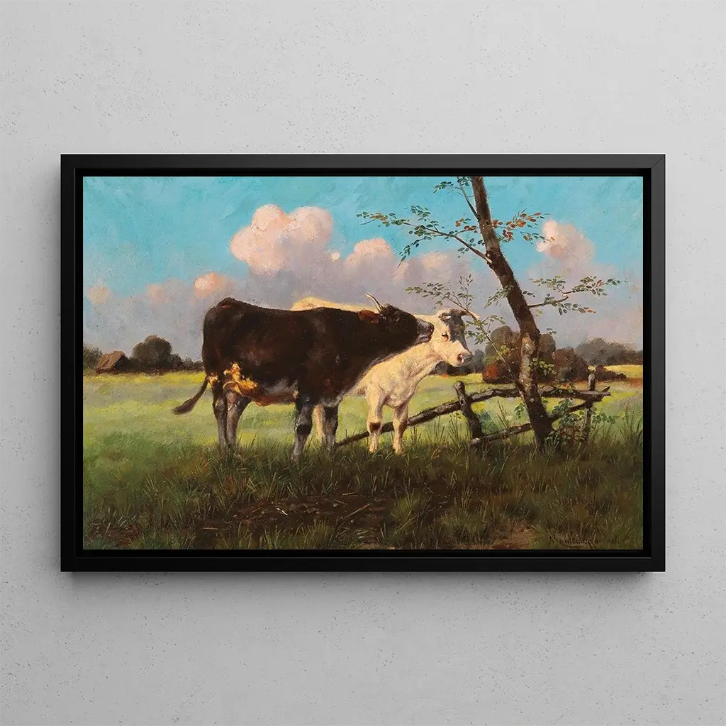 De kunstdruk Varkens in een weide van Antonio Montemezzo vangt de rust van een pastorale scène, waar de varkens vredig grazen in een groen landschap. De levendige en natuurlijke kleuren roepen de schoonheid van het platteland op, terwijl het zachte licht het doek verlicht en een warme en uitnodigende sfeer creëert. Montemezzo gebruikt schildertechnieken die de texturen van het gras en de dieren tot leven brengen, waardoor elk detail voelbaar wordt. Dit werk nodigt uit tot contemplatie, een moment van verbinding met de natuur.