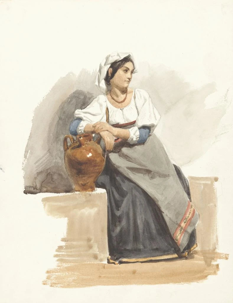 Studie van een kostuum van een jonge Italiaanse meisje - Pierre Louis Dubourcq