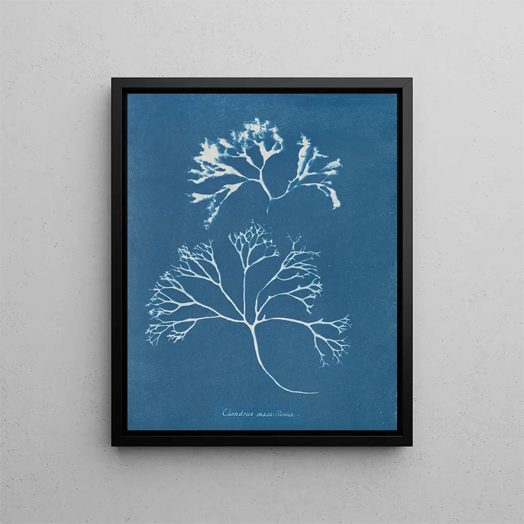Reproductie Cartilage mammaire - Anna Atkins – Boeiende introductie In de fascinerende wereld van botanische fotografie onderscheidt het werk "Cartilage mammaire" van Anna Atkins zich door haar vernieuwende en poëtische aanpak. Gemaakt in de 19e eeuw belichaamt dit iconische stuk de harmonie tussen kunst en wetenschap, en onthult het de schoonheid van natuurlijke vormen door een wetenschappelijk prisma. Anna Atkins, vaak erkend als de eerste vrouwelijke fotograaf, wist de delicate aard van algen en planten vast te leggen met een zeldzaam gevoel voor detail, en transformeerde botanische specimens in ware kunstwerken. Deze kunstdruk, "Cartilage mammaire - Anna Atkins", dompelt ons onder in een visuele dialoog tussen natuur en kunst, en nodigt uit tot diepe contemplatie. Stijl en uniekheid van het werk De stijl van Anna Atkins wordt gekenmerkt door haar baanbrekende gebruik van cyanotypie, een techniek die diepe, levendige blauwtinten produceert. In "Cartilage mammaire" wordt elk detail minutieus weergegeven, en onthult de delicate, organische structuur van de plant. Het werk onderscheidt zich door het ontbreken van kleur, waardoor een monochrome palet ontstaat dat de nuances van blauw versterkt. Deze minimalistische aanpak, gecombineerd met wetenschappelijke precisie, creëert een sfeer die zowel sereen als contemplatief is. De vormen, bijna etherisch, lijken te zweven op het papier en nodigen de kijker uit tot een intieme verkenning van de wonderen van de natuur. De juxtapositie van wetenschappelijke strengheid en artistieke esthetiek geeft het werk een uniekheid die de tijd overstijgt. De kunstenaar en haar invloed Anna Atkins, iconische figuur van de fotografische beweging, heeft de weg geëffend voor vele kunstenaars en wetenschappers. Haar werk gaat verder dan eenvoudige documentatie; het getuigt van een passie voor de natuur en een verlangen om deze te begrijpen en te delen. Als pionier heeft ze niet alleen bijgedragen aan de vooruitgang van de fotografie, maar ook de rol van vrouwen in het artistieke veld herdefinieerd. Haar invloed blijft vandaag de dag voortleven, en inspireert nieuwe generaties kunstenaars die zich toeleggen op de fusie tussen kunst en wetenschap. Atkins' werken worden nog steeds gevierd vanwege hun vermogen om de essentie van natuurlijke schoonheid vast te leggen, en maken haar tot een onmisbare figuur in de kunstgeschiedenis.