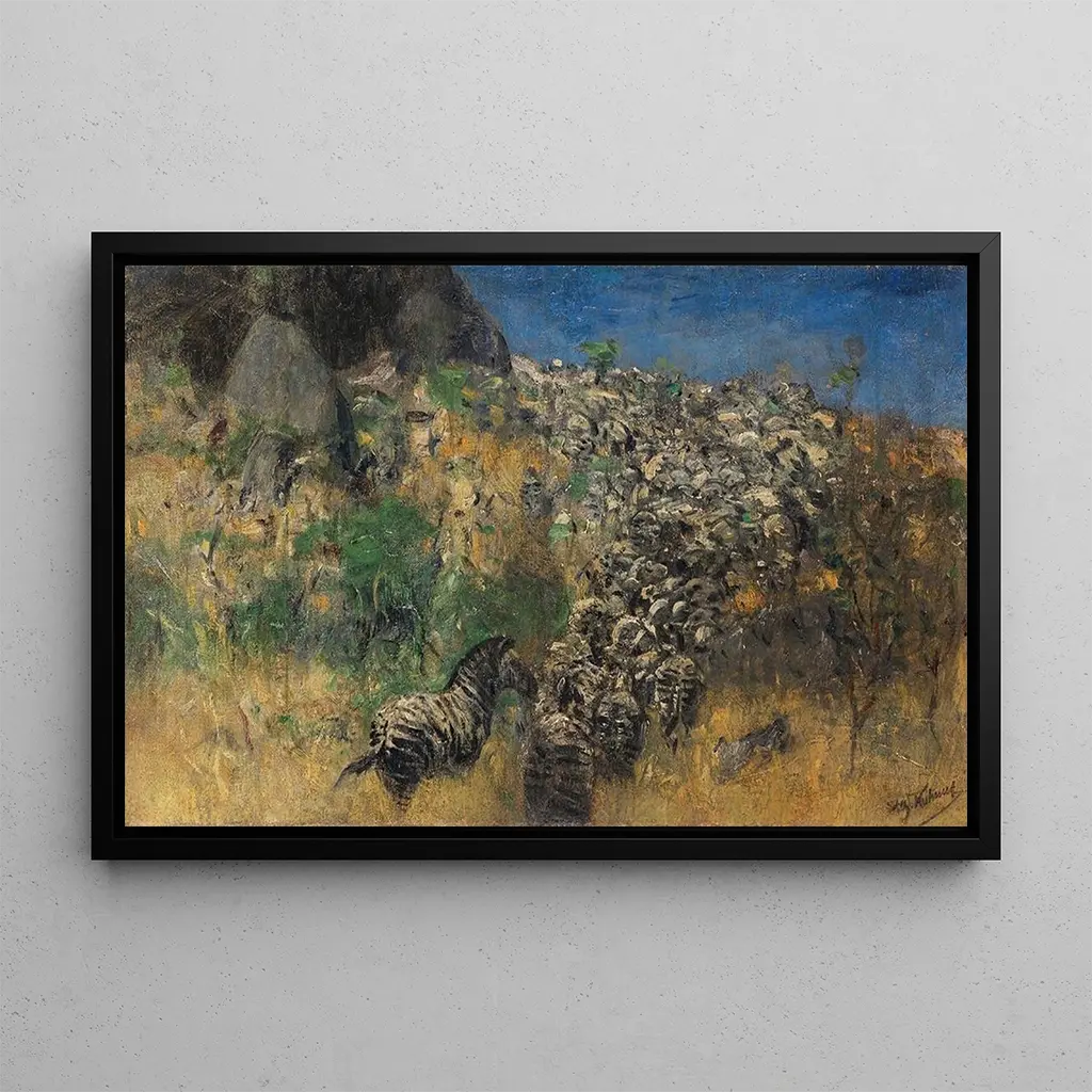 De kunstdruk van de "Koeper van vluchtende zebra's" is een decoratief item dat perfect past in diverse ruimtes, of het nu een woonkamer, kantoor of slaapkamer is. De kwaliteit van de afdruk garandeert een trouwheid aan de kleuren en details van het originele kunstwerk, wat zorgt voor een onmiskenbare esthetische aantrekkingskracht. Door voor dit schilderij te kiezen, voegt u een vleugje elegantie en natuur toe aan uw interieur, terwijl u gesprekken op gang brengt over de schoonheid van de fauna. Deze doek is niet alleen een decoratief element, maar ook een uitnodiging om de majesteit van de dierenwereld te verkennen.