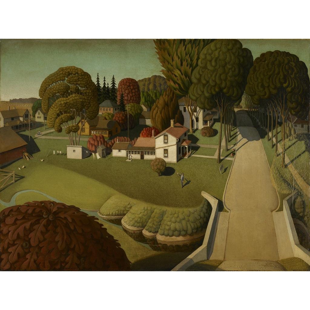 Het werk De geboorteplaats van Herbert Hoover, West Branch, Iowa (1931) door Grant Wood maakt deel uit van een bepaalde historische context. Dit meesterwerk is gecreëerd in een tijd waarin de kunstwereld diepgaande omwentelingen kende, waardoor een uniek perspectief op landelijk Amerika werd geboden. Wood, bekend om zijn innovatieve benadering van impressionisme, maakt gebruik van levendige kleuren en een onderscheidende stijl die de essentie van het Amerikaanse landschap vastlegt.