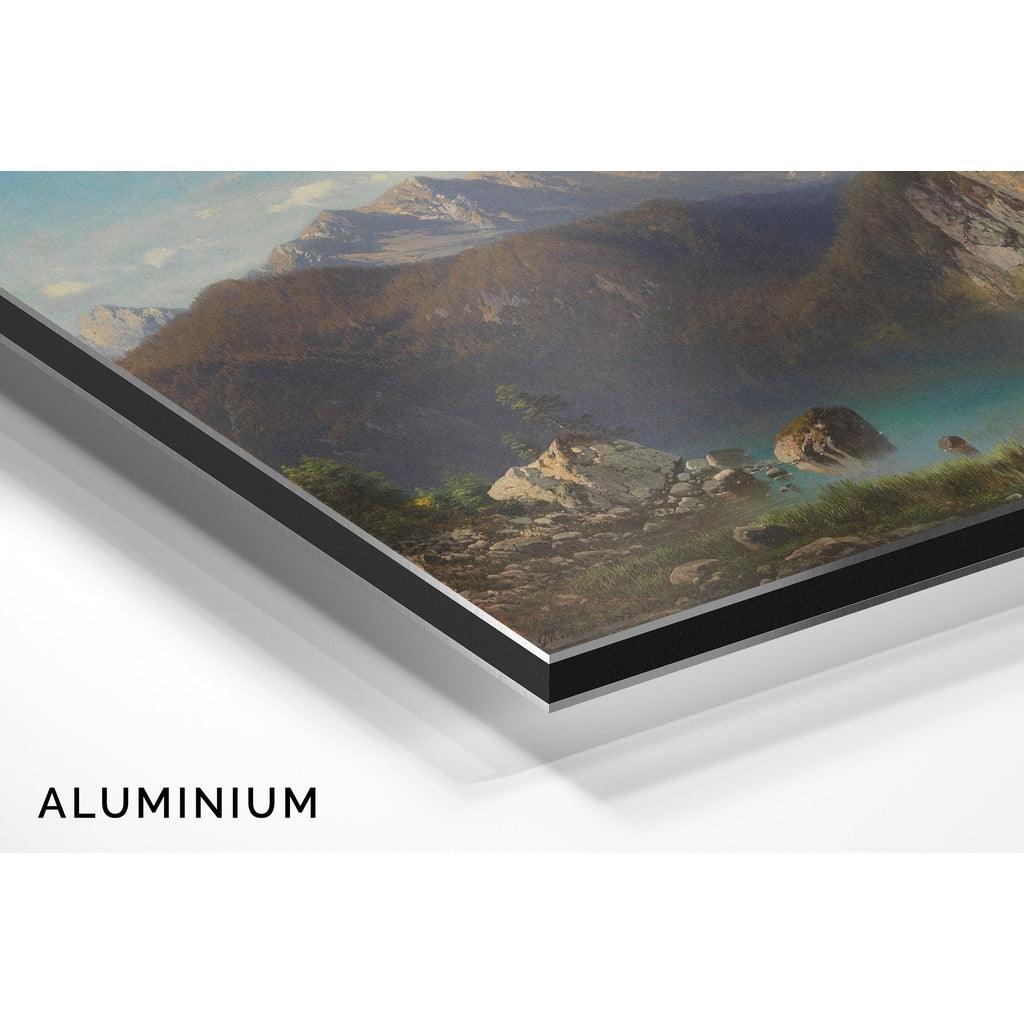 Het meer, vredig omgeven door majestueuze bergen, roept een sfeer van rust en contemplatie op. Het delicate licht dat danst op het water creëert een bijna magische ambiance, waardoor iedereen kan ontsnappen aan de wereld en zich onderdompelt in sereniteit. Deze kunstdruk roept diepe emoties op en wordt een essentieel onderdeel van je interieurdecoratie, met een vleugje elegantie en inspiratie voor je ruimte.