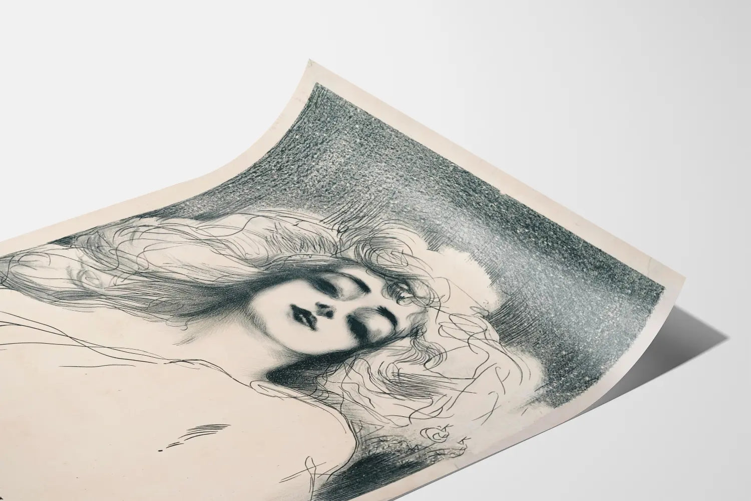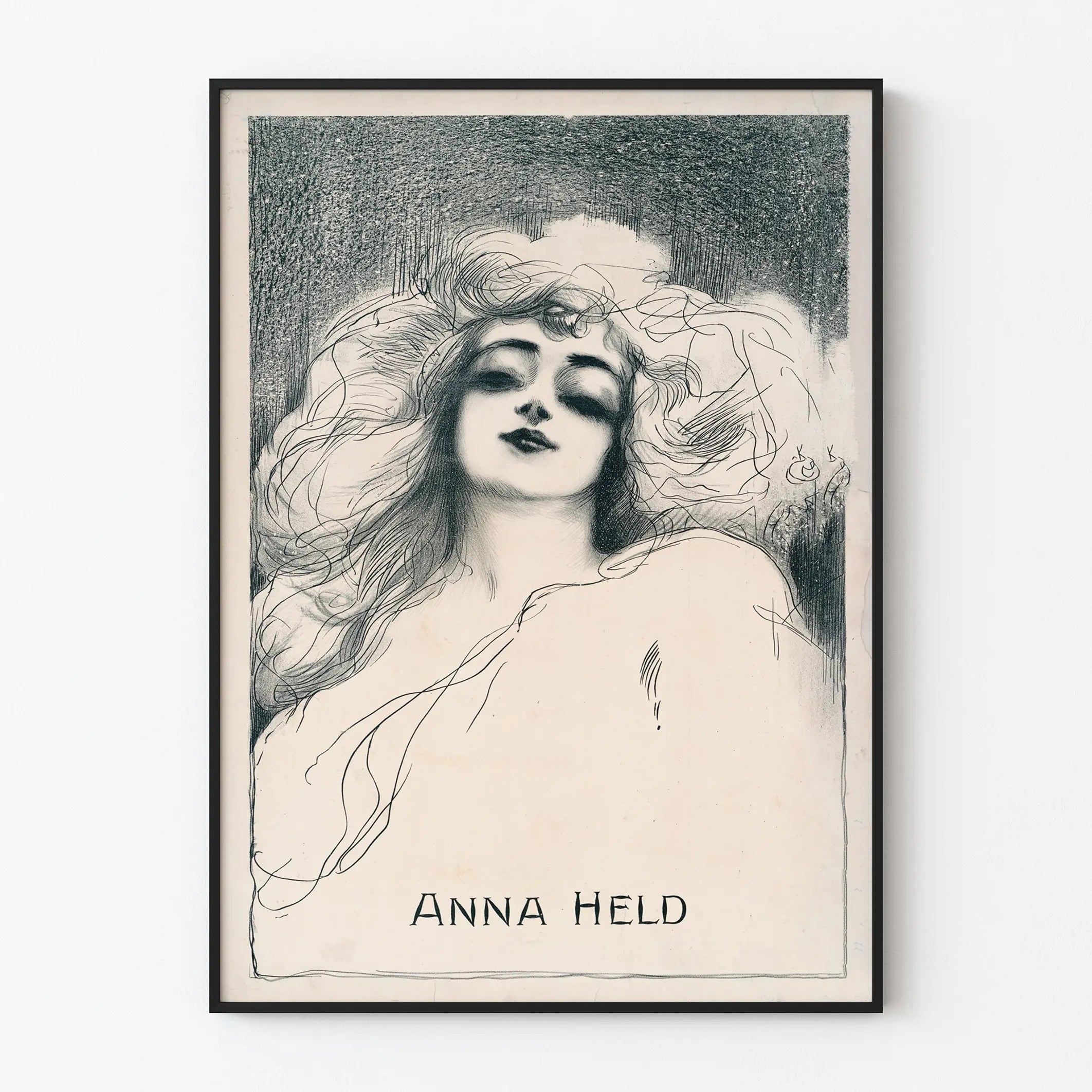 Ontdek dit artistieke vintage affiche van Anna Held, een opmerkelijke lithografische creatie door de fijnheid van het tekenwerk en de delicate lijnen. Deze poster benadrukt een gestileerd vrouwelijk portret, dat een mysterieuze en betoverende uitdrukking vastlegt, met expressieve details van het haar en het gezicht, uitgevoerd met potlood of houtskool, op een contrasterende schaduwachtergrond. Deze wanddecoratie past perfect in een retro en elegante wereld, ideaal om een artistieke en culturele sfeer aan uw interieur toe te voegen. Het tekenwerk combineert lichte lijnen en precieze schaduwwerking, wat een traditionele grafische vakmanschap onthult, en zo een authentiek en karaktervol wanddecorstuk biedt. Deze Anna Held poster is vooral geschikt voor liefhebbers van oude kunst, originele lithografieën en subtiele grafische composities. Of het nu voor een woonkamer, kantoor of galerie is, dit wandpaneel straalt een sterke visuele aanwezigheid uit zonder het geheel te overbelasten, dankzij het zachte monochrome palet dat gemakkelijk combineert met elk type inrichting. Door deze affiche aan uw collectie toe te voegen, kiest u voor een uniek decoratief element dat een vleugje geschiedenis en klassieke esthetiek aan uw muren brengt. Deze wandposter is bedoeld voor iedereen die zijn interieur wil verrijken met een expressieve vintage illustratie, gemaakt voor liefhebbers van grafische kunst en tijdloze vrouwelijke portretten.