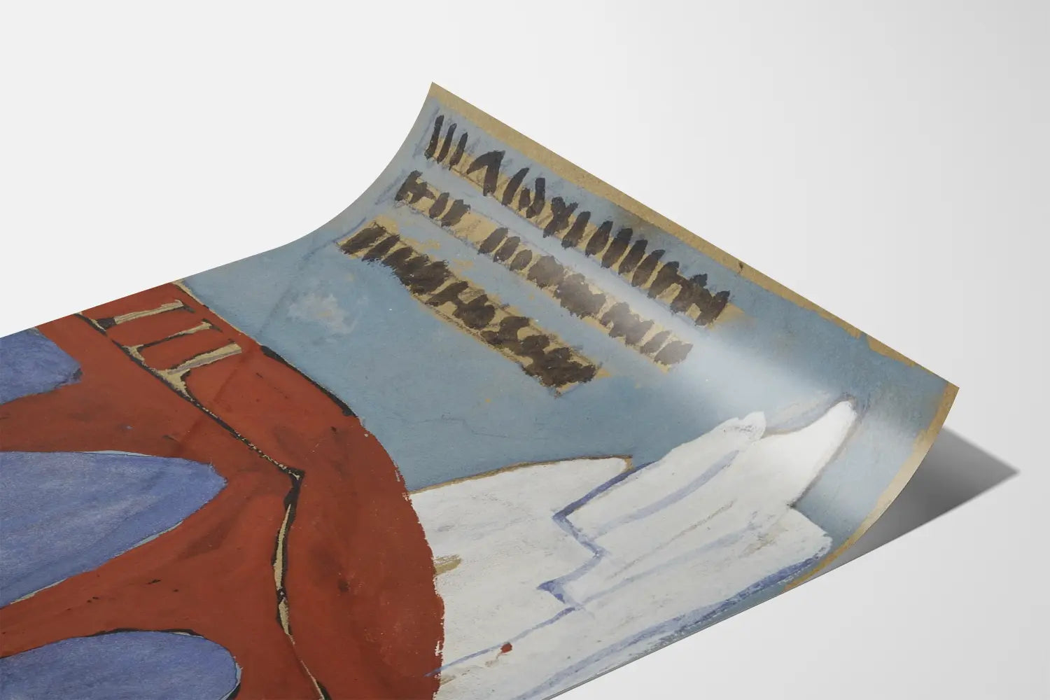 Deze originele poster toont een kenmerkend grafisch ontwerp dat architecturale vormen combineert met tekstuele elementen. Daarin is een boogbrug met ronde bogen, geschilderd in bruin-rood, te zien die zich uitstrekt van de ene naar de andere kant van de compositie. Op de achtergrond lijken een reeks witte vormen met blauwe contouren een gestileerde constructie of landschap voor te stellen. De achtergrond in tinten van blauw en beige creëert een zachte contrast met de voorgrond. Aan de bovenkant van de poster staan zwarte tekstregels op een okerkleurige achtergrond, en onderaan een titel in hoofdletters die een aankondiging of advertentie suggereert voor het "Kunstmuseum der Landeskunstschule". Deze muurschildering, geïnspireerd door de moderne kunst en abstracte grafiek, is ideaal voor een originele en culturele muurdecoratie. Een perfecte poster om een eigentijdse of kunst- en geschiedenissfeer te verrijken. Ze past moeiteloos in een minimalistische, bohemien of industriële stijl. Deze wanddecoratieposter nodigt uit tot het ontdekken van een Europees artistiek erfgoed, terwijl hij een vleugje visuele verfijning toevoegt door zijn evenwicht tussen geometrische vormen en geschilderde texturen. Een uniek accent voor liefhebbers van kunst en grafisch ontwerp.