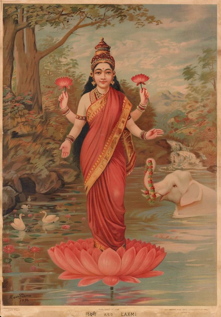 Schilderij Lakshmi - Raja Ravi Varma | Kunstdruk