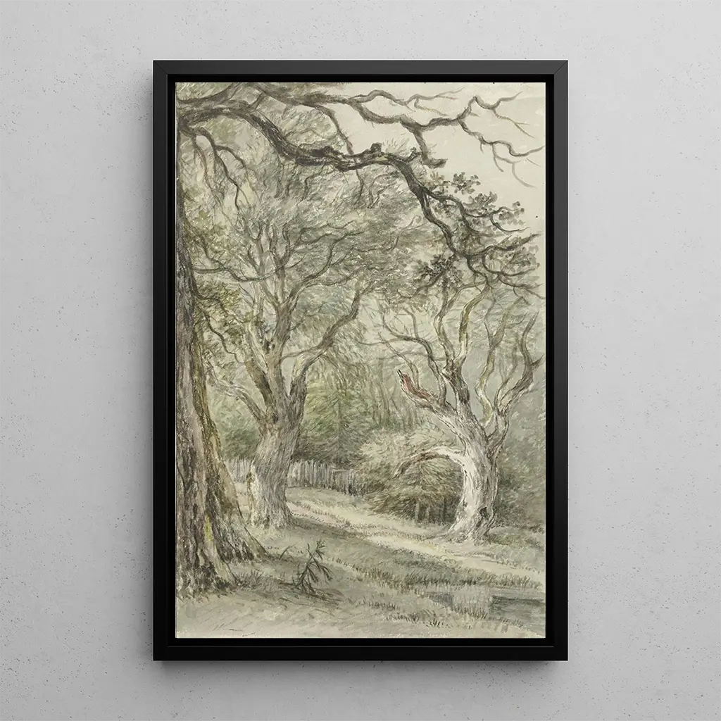Het kunstdruk "Landschapskunstdruk" van Jan Hulswit dompelt ons onder in weelderige natuur, waar het licht door dichte bladeren filtert. De tinten groen, gemengd met accenten van bruin en goud, creëren een rustige en sereen sfeer. De techniek van de kunstenaar, gekenmerkt door delicate penseelstreken, brengt de details van de bomen en de textuur van de bodem tot leven. Dit landschap, doordrenkt met rust, nodigt uit tot contemplatie en ontsnapping, alsof je er vrij kunt wandelen, de frisse lucht inademen en naar het gezang van vogels luisteren.
