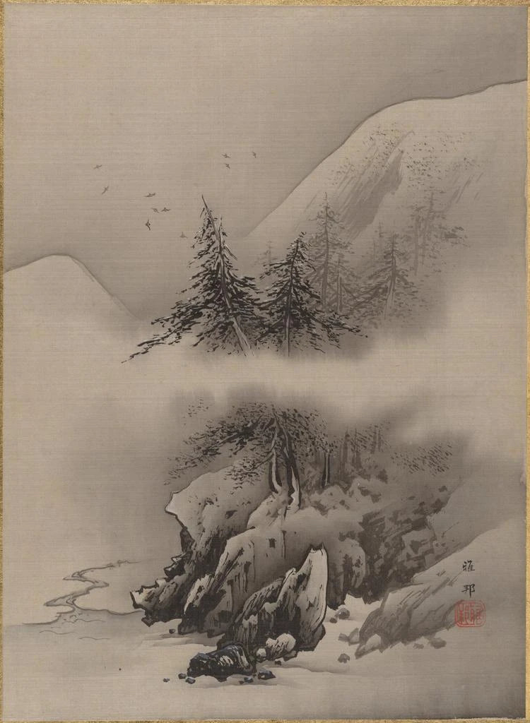 Hashimoto Gahō, figure emblématique de l'art japonais du XIXe siècle, a su marier tradition et innovation. Influencé par les grands maîtres de l'ukiyo-e, il a développé un style unique qui allie précision et poésie. Gahō a consacré sa carrière à la représentation de paysages et de scènes de la vie quotidienne, capturant l'essence de son époque tout en préservant les techniques ancestrales. Son œuvre, "Paysage enneigé", témoigne de son habileté à évoquer des émotions à travers des compositions délicates, faisant de lui un artiste incontournable de son temps.