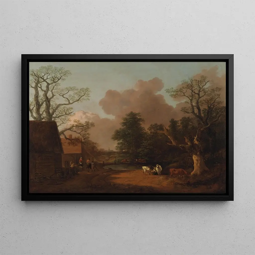 In "Paysage avec une Laitière" brengt Thomas Gainsborough ons naar het hart van een idyllisch landschap. Het doek toont een melkster die bezig is met haar dagelijkse taken, omringd door weelderig groen en een zachte lichtstraal die de vormen streelt. De delicate kleuren en minutieuze details onthullen een uitzonderlijke beheersing van de schildertechniek, waardoor een serene en nostalgische sfeer ontstaat. Dit werk is een eerbetoon aan het landelijke leven, waar elk element, van de hemel tot de bomen, bijdraagt aan een visuele harmonie die uitnodigt tot dromen.