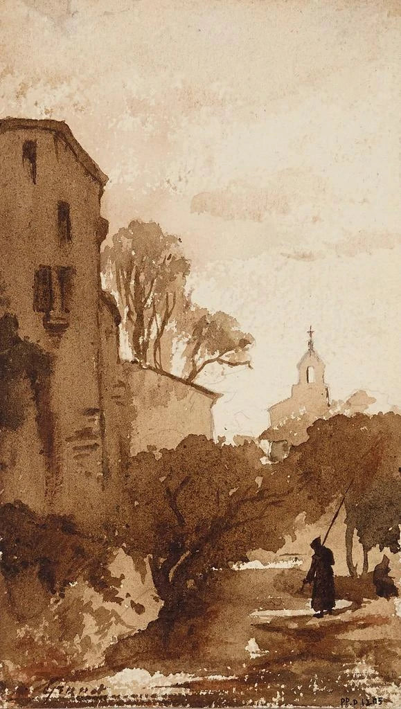 François-Marius Granet, actief in het begin van de 19e eeuw, is een Franse schilder die bekend staat om zijn landschappen en genre-scènes. Geïnspireerd door de romantische beweging, haalt hij zijn inspiratie uit de schoonheid van Italiaanse landschappen, die hij tijdens zijn reizen ontdekte. Granet onderscheidt zich door zijn vermogen om de essentie van de plaatsen vast te leggen, waarbij hij realisme en poëzie combineert. Zijn werken, vaak doordrenkt met melancholie, getuigen van een tijd waarin kunst zich afzet tegen academische conventies om menselijke emoties en de natuur te verkennen. "Paysage avec un clocher" illustreert perfect deze zoektocht naar authenticiteit en schoonheid.