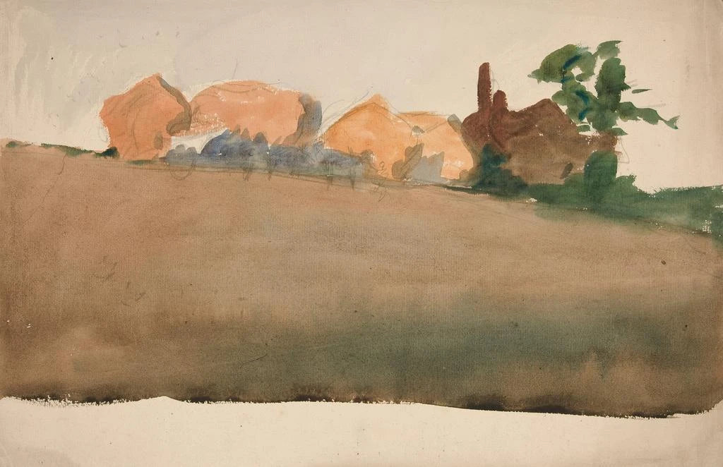 Landschap met huizen in de verte - Edwin Austin Abbey
