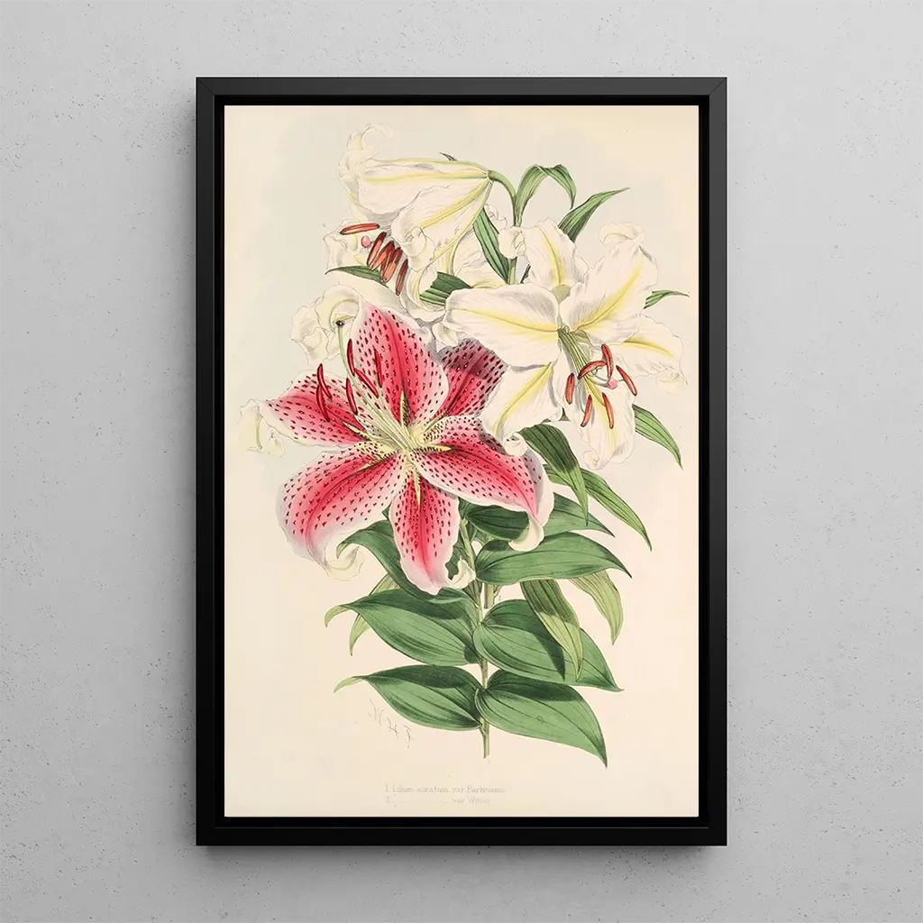De kunstdruk van Lilium auratum var Parkmanm is een ideale keuze om diverse leefruimtes te verfraaien, of het nu in een woonkamer, kantoor of slaapkamer is. De kwaliteit van de afdruk garandeert een trouwheid aan de kleuren en details van het originele kunstwerk, en brengt een vleugje elegantie en verfijning in uw interieurdecoratie. Dit schilderij, met zijn onmiskenbare esthetische aantrekkingskracht, kan dienen als een blikvanger in een kamer of als een aanvullend element bij andere kunstwerken. Door deze doek in uw inrichting te integreren, nodigt u de schoonheid van de natuur uit in uw huis, terwijl u het artistieke erfgoed van Walter Hood Fitch eert.
