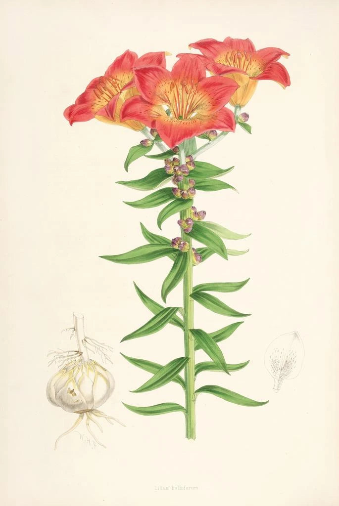 Walter Hood Fitch, actief in de 19e eeuw, wordt erkend als een van de grootste botanische illustrators van zijn tijd. Zijn werk werd beïnvloed door de wetenschappelijke ontdekkingen van zijn periode, waarin de studie van planten en bloemen een groeiend belang kreeg. Fitch wist wetenschappelijke nauwkeurigheid te combineren met esthetiek, waardoor hij kunstwerken kon creëren die zowel informatief als visueel boeiend zijn. Zijn illustraties, waaronder Lilium bulbiferum, zijn uitgegroeid tot referenties in de botaniek en getuigen van het belang van kunst bij het verspreiden van wetenschappelijke kennis.