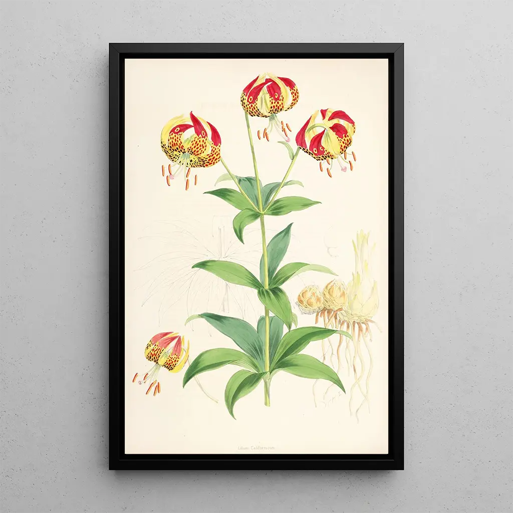 Walter Hood Fitch, botanist en illustrator van de 19e eeuw, markeerde zijn tijd met zijn ongeëvenaarde precisie. Opgeleid aan de Royal Academy of Arts in Londen, werd hij beïnvloed door de grote naturalisten van zijn tijd, zoals Joseph Dalton Hooker. Fitch wijdde zijn carrière aan de illustratie van planten en droeg bij aan belangrijke wetenschappelijke publicaties. Zijn stijl, die wetenschappelijke strengheid combineert met verfijnde esthetiek, eerde de schoonheid van plantensoorten. De kunstdruk van Lilium Californicum past binnen deze traditie en getuigt van het belang van kunst in de botanische wetenschap.