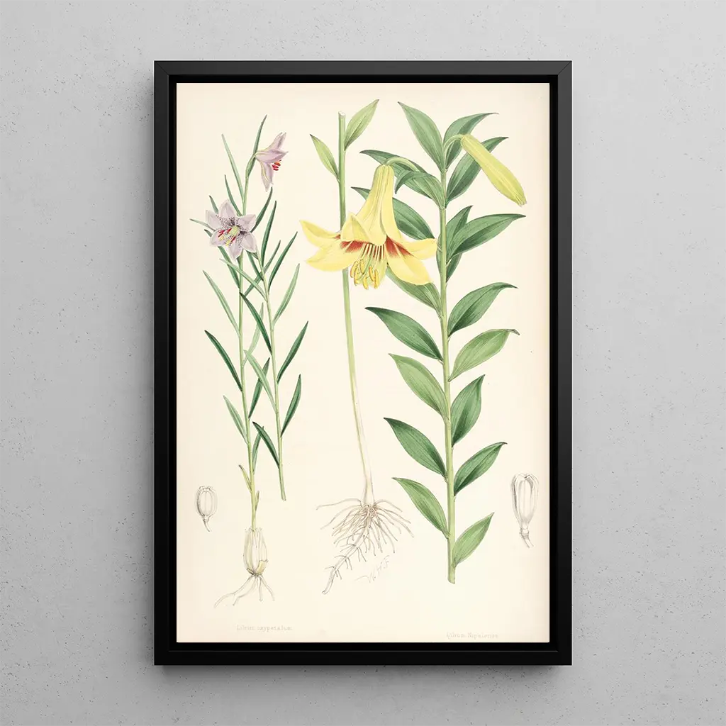 Walter Hood Fitch, reconnu comme l'un des plus grands illustrateurs botaniques du XIXe siècle, a su allier science et art avec brio. Sa carrière, marquée par des collaborations avec des botanistes renommés, lui a permis de réaliser des œuvres qui sont devenues des références dans le domaine. Influencé par les courants artistiques de son temps, Fitch a développé un style unique, caractérisé par une attention minutieuse aux détails et une approche réaliste. Lilium oxypetalum est un exemple parfait de son talent, illustrant non seulement la beauté des fleurs, mais aussi l'importance de la documentation scientifique dans l'art.