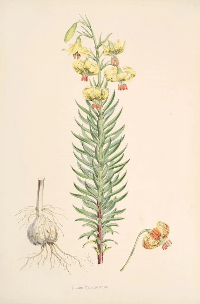 Walter Hood Fitch, botanisch illustrator uit de 19e eeuw, markeerde zijn tijd met zijn unieke aanpak die wetenschappelijke precisie combineert met artistieke gevoeligheid. Zijn productieve carrière leidde tot duizenden illustraties, waaronder Lilium Pyrenaicum, die getuigen van zijn liefde voor de natuur. Geïnspireerd door de botanische verkenningen van zijn tijd, werkte Fitch samen met gerenommeerde botanici en droeg hij bij aan de documentatie van vele soorten. Zijn werk heeft niet alleen het veld van de botanica verrijkt, maar heeft ook een blijvende indruk achtergelaten in de wereld van de kunst, waardoor hij een iconische figuur werd in de botanische illustratie.