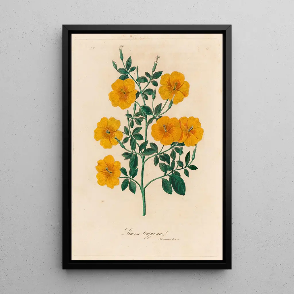 De kunstdruk van "Linum trigynum" is een perfecte keuze om een vleugje natuur aan uw interieurdecoratie toe te voegen. Of het nu in een woonkamer, kantoor of slaapkamer is, deze doek zal overtuigen door zijn afdrukkwaliteit en trouw aan de oorspronkelijke kleuren. De esthetische aantrekkingskracht maakt het een decoratief element dat gemakkelijk in diverse interieurstijlen past. Door voor dit werk te kiezen, kiest u voor een decoratie die de schoonheid van bloemen viert en tegelijkertijd een gevoel van sereniteit aan uw leefruimte toevoegt.