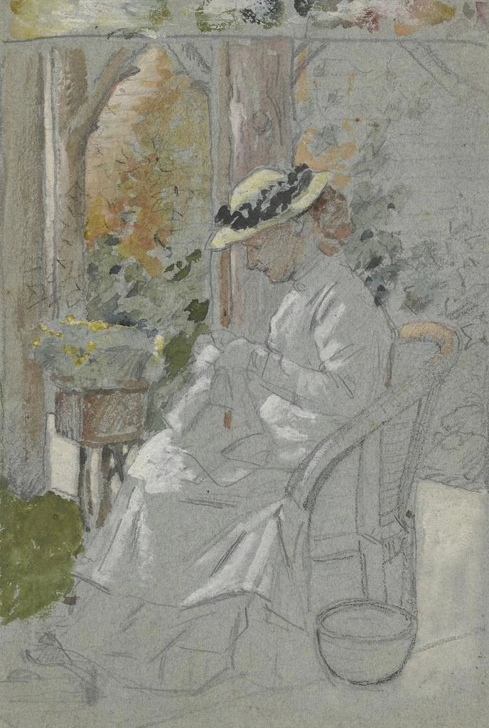 Schilderij Luise Scholderer sur la véranda - Otto Scholderer | Kunstdruk