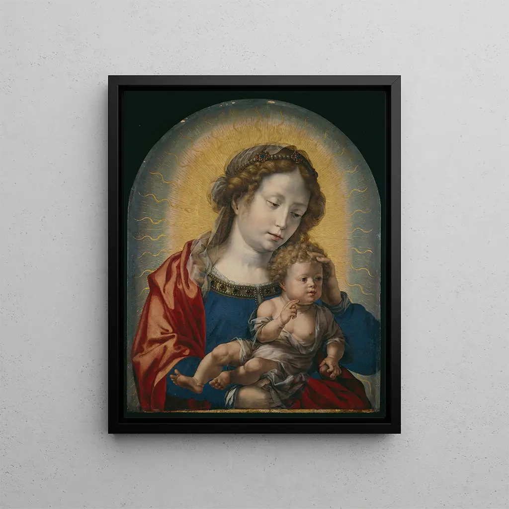 Vierge aan het Kind: een scène van heilige tederheid De kunstdruk van de Vierge aan het Kind van Jan Gossaert roept een sfeer op die doordrenkt is van zachtheid en sereniteit. De warme, gouden kleuren, typisch voor de Renaissance, omhullen het schilderij met een goddelijke lichtstraal. De compositie, zorgvuldig in balans, benadrukt de intieme relatie tussen de Vierge en het Kind, symboliserend moederliefde en bescherming. De minutieuze details van de kleding en de uitdrukkingen van de gezichten getuigen van Gossaert's talent om menselijke emoties vast te leggen. Dit werk nodigt uit tot contemplatie en biedt een moment van rust in een vaak onrustige wereld. Jan Gossaert: een meester van de Vlaamse Renaissance Jan Gossaert, ook bekend als Mabuse, is een iconische figuur van de Vlaamse Renaissance. Actief aan het begin van de 16e eeuw, werd hij beïnvloed door Italiaanse meesters en integreerde elementen van de Italiaanse schilderkunst in zijn eigen stijl. Gossaert wordt erkend om zijn vermogen om realisme en spiritualiteit te combineren, wat hem onderscheidde in het artistieke landschap van zijn tijd. Zijn werken, vaak religieus van aard, weerspiegelen een diepgaand begrip van licht en kleur, waardoor hij een pionier werd in het gebruik van olieverf. De kunstdruk van de Vierge aan het Kind is een perfect voorbeeld van zijn artistieke genialiteit. Een decoratief stuk met meerdere voordelen De kunstdruk van de Vierge aan het Kind is een decoratief stuk dat harmonieus in diverse ruimtes past, of het nu in een woonkamer, kantoor of slaapkamer is. De kwaliteit van de afdruk en de trouw aan de originele details maken het een ideale keuze voor kunstliefhebbers en verzamelaars. Door deze doek aan uw inrichting toe te voegen, brengt u een vleugje elegantie en spiritualiteit in uw interieur. De esthetische aantrekkingskracht van dit werk zal ongetwijfeld de bewondering van uw gasten wekken, terwijl het een rustgevende en inspirerende sfeer creëert.