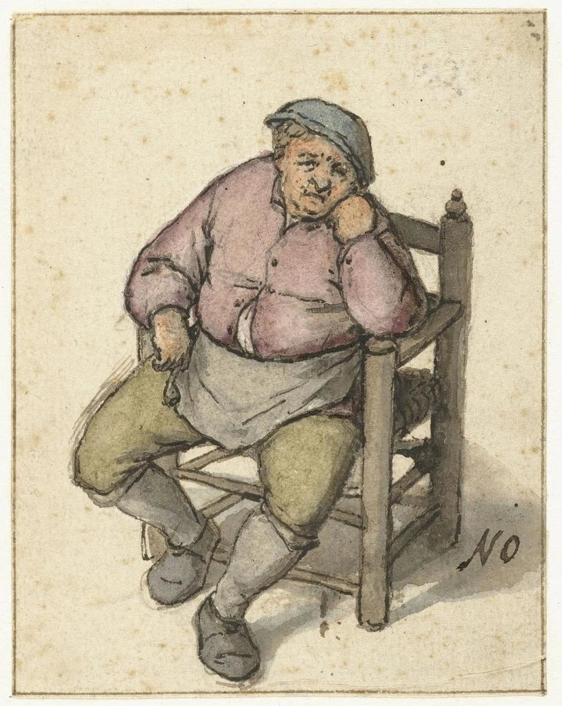 Kunstdruk | Man zittend met een pijp - Adriaen van Ostade