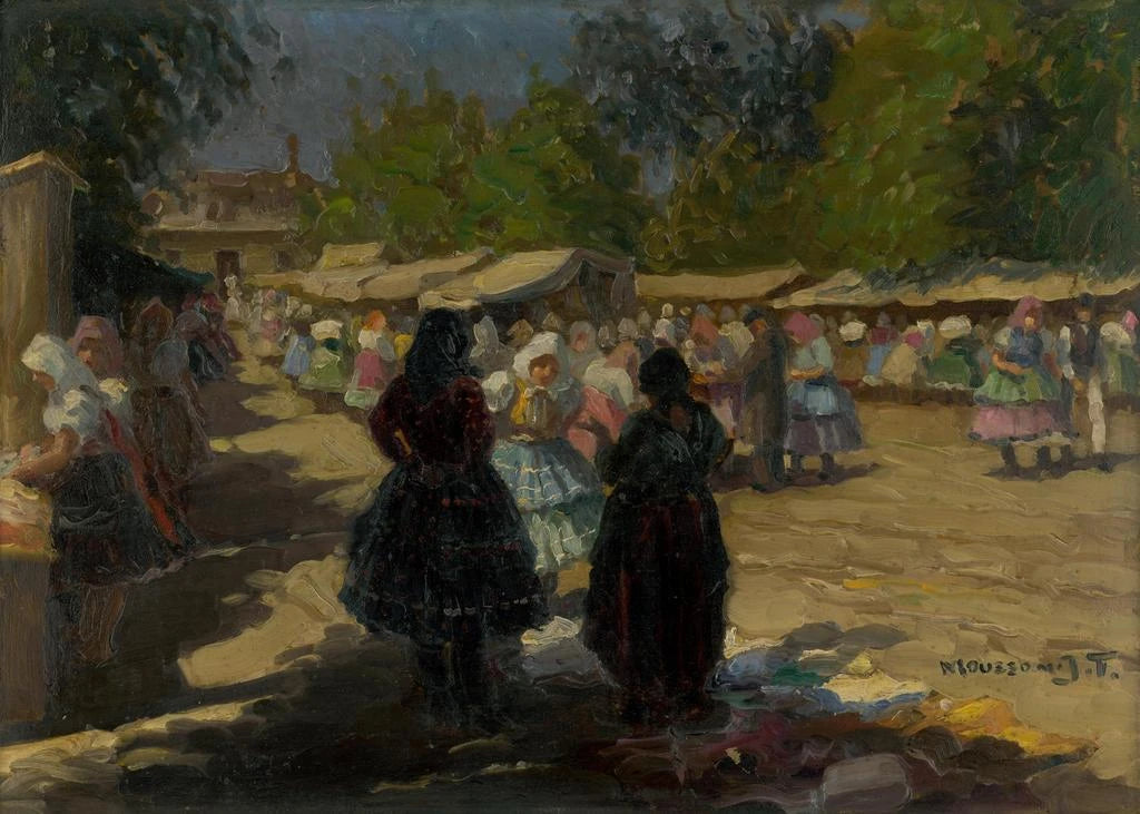 Markt in Michalovce II: een levendige scène uit het dagelijks leven In deze kunstdruk van Markt in Michalovce II dompelt Jozef Teodor Mousson ons onder in een kleurrijk en levendig tafereel. De personages, gekleed in traditionele kostuums, bewegen zich rond de kraampjes vol lokale producten. De warme, aardse tinten, gecombineerd met heldere kleuren, creëren een uitnodigende en feestelijke sfeer. De olieverftechniek maakt het mogelijk om de details met verbluffende precisie weer te geven, terwijl het licht een essentiële rol speelt door de gezichten en voorwerpen met een tastbare zachtheid te verlichten. Dit werk nodigt uit tot contemplatie van menselijke interacties en culturele tradities. Jozef Teodor Mousson: een getuige van het Slowaakse leven in de 19e eeuw Jozef Teodor Mousson, geboren in 1850, is een Slowaakse schilder die de essentie van het landelijke leven van zijn tijd heeft weten vast te leggen. Geïnspireerd door de realistische beweging richt hij zich op scènes uit het dagelijks leven, waarbij hij de tradities en gebruiken van zijn land benadrukt. Zijn carrière beslaat meerdere decennia, waarin hij aan vele tentoonstellingen heeft deelgenomen en heeft bijgedragen aan de erkenning van de Slowaakse kunst. Mousson wordt vaak beschouwd als een pionier van het genre schilderen in Slowakije, en zijn werken, zoals Markt in Michalovce II, getuigen van zijn inzet om de lokale cultuur met authenticiteit en gevoeligheid weer te geven. Een decoratief kunstwerk met vele voordelen Kiezen voor een kunstdruk van Markt in Michalovce II betekent kiezen voor een doek dat een vleugje authenticiteit en warmte aan uw interieur toevoegt. Of het nu in een woonkamer, kantoor of slaapkamer is, dit werk past harmonieus in diverse decoratiestijlen, van traditioneel tot modern. De kwaliteit van de kunstdruk garandeert een trouwheid aan de details en kleuren van het origineel, terwijl het esthetische aantrekkingskracht onmiskenbaar is. Door dit schilderij aan uw collectie toe te voegen, doet u meer dan decoreren: u vertelt een verhaal, dat van een rijke en levendige cultuur.