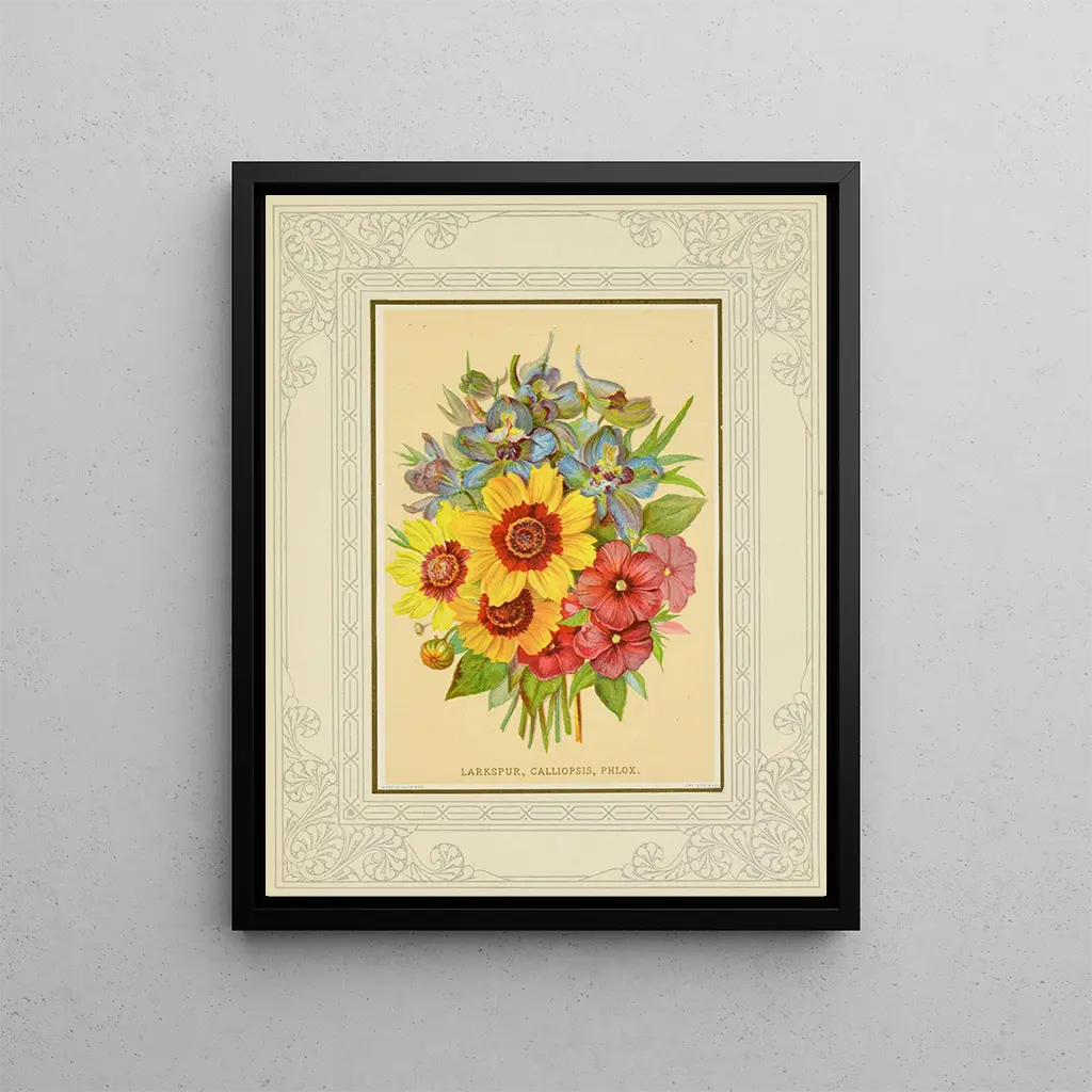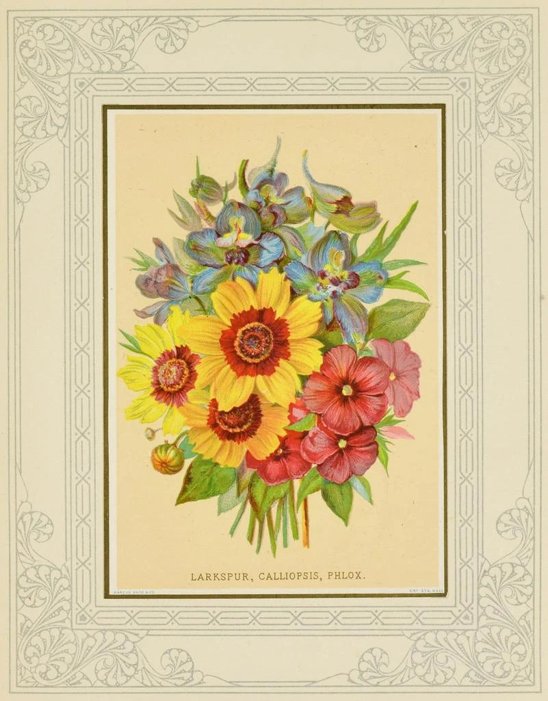 Kunstdruk | Delphinium, calliopsis, phlox - Marcus Ward & Co.