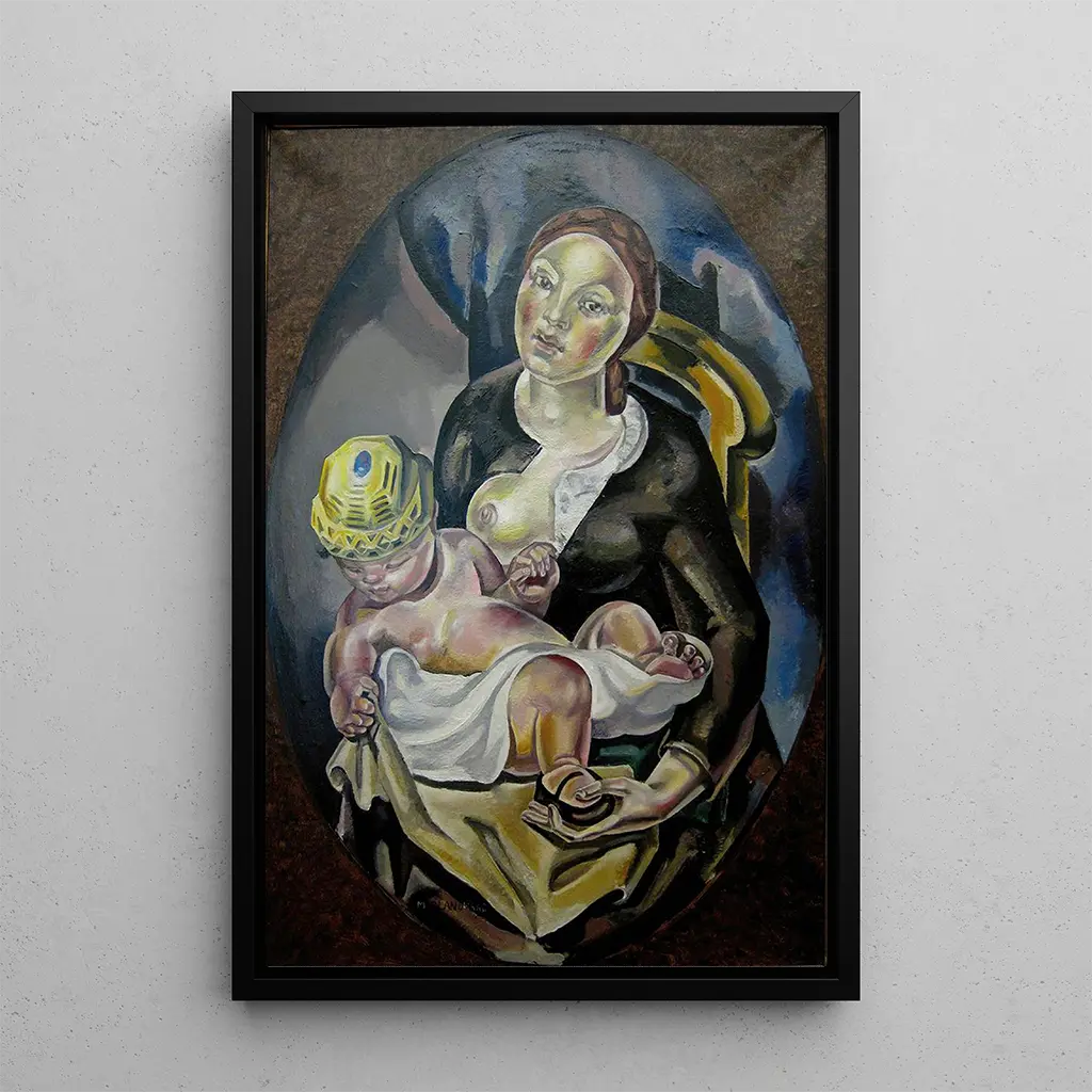 Materniteit: een eerbetoon aan moederlijke tederheid De kunstdruk van Materniteit door María Blanchard roept een zachte intimiteit op tussen moeder en kind. De warme kleuren, voornamelijk aardetinten en pasteltinten, omhullen de scène met een rustgevende sfeer. De techniek van de kunstenaar, die zachtheid van vormen en precisie van lijnen combineert, creëert een harmonieuze compositie waarin elk element lijkt te ademen van liefde en bescherming. De vloeiende lijnen en delicate contouren versterken deze indruk van tederheid, en nodigen de kijker uit om zich onder te dompelen in dit moment van delen en sereniteit. María Blanchard: een pionier van het vrouwelijke modernisme María Blanchard, actief in het begin van de 20e eeuw, is een iconische figuur binnen het modernisme, vaak ondergewaardeerd in de kunstgeschiedenis. Geïnspireerd door de avant-gardebewegingen van haar tijd, wist ze elementen van impressionisme en kubisme in haar werk te integreren. Haar carrière bloeide in een periode waarin vrouwelijke kunstenaars streden om een plek te veroveren in een door mannen gedomineerde wereld. Materniteit, gemaakt in de jaren 1930, getuigt van haar inzet om vrouwelijke en familiale thema's te vertegenwoordigen, terwijl ze nieuwe vormen van artistieke expressie verkent. Een decoratief stuk met vele voordelen De kunstdruk van Materniteit is een doek dat zich perfect integreert in diverse woonruimtes, of het nu gaat om een gezellige woonkamer, een inspirerend kantoor of een rustgevende slaapkamer. De kwaliteit van de afdruk en de trouw aan het originele werk garanderen een verfijste esthetiek die de aandacht trekt. Door dit kunstwerk aan je inrichting toe te voegen, versier je niet alleen je interieur, maar breng je ook een vleugje emotie en gevoeligheid, waardoor elk blikmoment een moment van contemplatie en verbinding wordt.