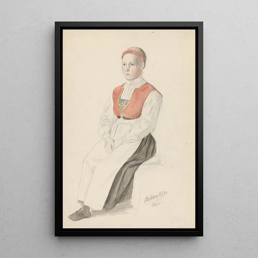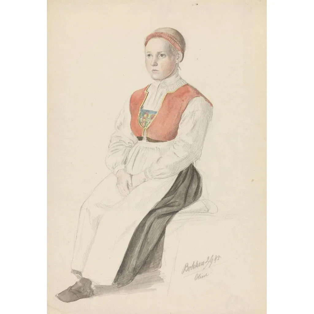 Dans la reproduction du tableau Fille en costume Oline Bukken, Adolph Tidemand nous plonge dans l’univers coloré et riche des costumes traditionnels norvégiens. La jeune fille, vêtue d’un costume folklorique, rayonne de fierté et de beauté, incarnant l’héritage culturel de son pays. Les détails minutieux du costume, avec ses broderies et ses couleurs vives, sont mis en valeur par un fond délicat qui accentue la luminosité de la scène. Tidemand parvient à capturer non seulement l’apparence, mais aussi l’esprit de la culture norvégienne, invitant le spectateur à apprécier la profondeur de cette tradition.