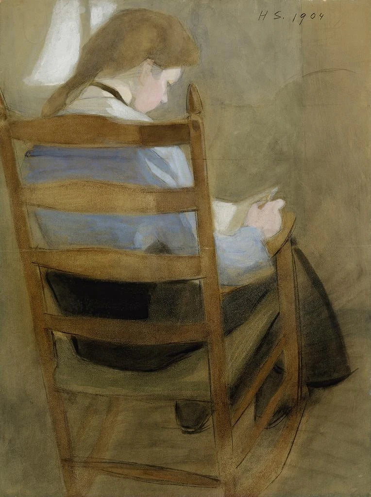 Meisje dat een meisje leest zittend - Helene Schjerfbeck