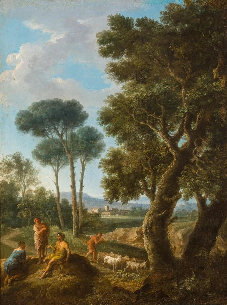 Reproductie Boeren van geiten in een landschap in Italiaanse stijl - Andrea Locatelli – Boeiende introductie Het werk "Boeren van geiten in een landschap in Italiaanse stijl" van Andrea Locatelli is een uitnodiging om onder te dompelen in een pastoralistisch wereldje waar natuur en mens in harmonie samenleven. Dit doek, emblematisch voor de barokstijl, beeldt een idyllisch landschap uit dat badend in licht, waar de boeren, centrale figuren van de scène, lijken te integreren in een levendig schilderij. De compositie, zowel eenvoudig als rijk aan details, roept een tijdloze sereniteit op en voert de kijker mee op een reis door de groene heuvels van Italië. Locatelli, met zijn scherp oog voor observatie, slaagt erin niet alleen de schoonheid van het landschap vast te leggen, maar ook de essentie van het plattelandsleven, waarin elk element bijdraagt aan de algehele harmonie. Stijl en uniekheid van het werk Het werk van Locatelli onderscheidt zich door zijn meesterlijke gebruik van licht en kleur. De delicate tinten groen en blauw die de scène domineren, creëren een rustige sfeer, terwijl de gouden lichtaccenten de warmte van een zonnige middag suggereren. De personages, hoewel bescheiden in hun dagelijkse activiteiten, worden met bijzondere aandacht behandeld, waarbij de kenmerken van hun karakter en hun band met het omringende landschap worden onthuld. De olieverftechniek stelt de kunstenaar in staat te spelen met texturen, waardoor het groen van de bladeren, de rotsen en de dieren die de scène bevolken, tot leven komen. Elk detail, of het nu de plooien van de kleding of de bewegingen van de geiten betreft, getuigt van minutieuze observatie en een diep begrip van de natuur. Dit schilderij is niet slechts een representatie; het wordt een viering van het plattelandsleven, waarin de blik van de kijker wordt geleid door een rijke en boeiende visuele vertelling. De kunstenaar en zijn invloed Andrea Locatelli, actief in de 17e eeuw, wordt vaak beschouwd als een meester van het Italiaanse landschap. Zijn werk past binnen de traditie van de schilders van zijn tijd, maar hij weet zich te onderscheiden door zijn unieke aanpak. Geïnspireerd door de grote meesters van het landschap, ontwikkelt Locatelli een stijl die precisie en poëzie combineert. Zijn composities, vaak bevolkt met menselijke figuren, getuigen