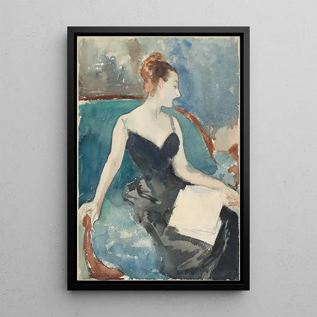 Madame Gautreau Madame X : een icoon van de moderniteit Het schilderij Madame Gautreau, ook bekend als Madame X, is een iconisch werk van John Singer Sargent dat de schoonheid en het mysterie belichaamt. In dit portret vangt Sargent de gratie van de mooie socialite, gekleed in een gedurfde zwarte jurk die haar slanke silhouet accentueert. De verfijnde details, zoals de plooien van de jurk en het lichtspel op haar huid, creëren een sfeer die zowel verleidelijk als verontrustend is. De intense blik van Madame Gautreau, gecombineerd met een licht provocerende houding, nodigt uit tot reflectie over de schoonheidsnormen en sociale status van die tijd. John Singer Sargent : de meester van het moderne portret John Singer Sargent, Amerikaanse kunstenaar van Italiaanse afkomst, wist zich te vestigen als een van de grootste portretschilders van het einde van de 19e eeuw. Zijn carrière, gekenmerkt door invloeden variërend van realisme tot impressionisme, stelde hem in staat een unieke stijl te ontwikkelen die de conventies van zijn tijd overstijgt. Madame Gautreau, geschilderd in 1884, veroorzaakte controverse tijdens haar tentoonstelling vanwege de gedurfde pose van haar model en de donkere kleur van haar jurk. Dit werk heeft niet alleen de reputatie van Sargent versterkt, maar ook de weg geopend voor een nieuwe benadering van het portret, waarin individualiteit en psychologie van het onderwerp centraal staan. Een decoratieve aanwinst met vele voordelen De kunstdruk van Madame Gautreau, of Madame X, is een ideale keuze voor wie zijn interieur wil verrijken met een kunstwerk vol geschiedenis. Of het nu in een woonkamer, kantoor of slaapkamer hangt, dit doek trekt de aandacht en wekt bewondering. De reproducentiegarantie biedt een indrukwekkende fideliteit aan de details en kleuren van het originele werk, waardoor je de intensiteit van de emotie die Sargent wilde overbrengen, kunt voelen. Door dit schilderij in je ruimte te integreren, voeg je een vleugje verfijning en elegantie toe, terwijl je het artistieke erfgoed van het einde van de 19e eeuw viert.
