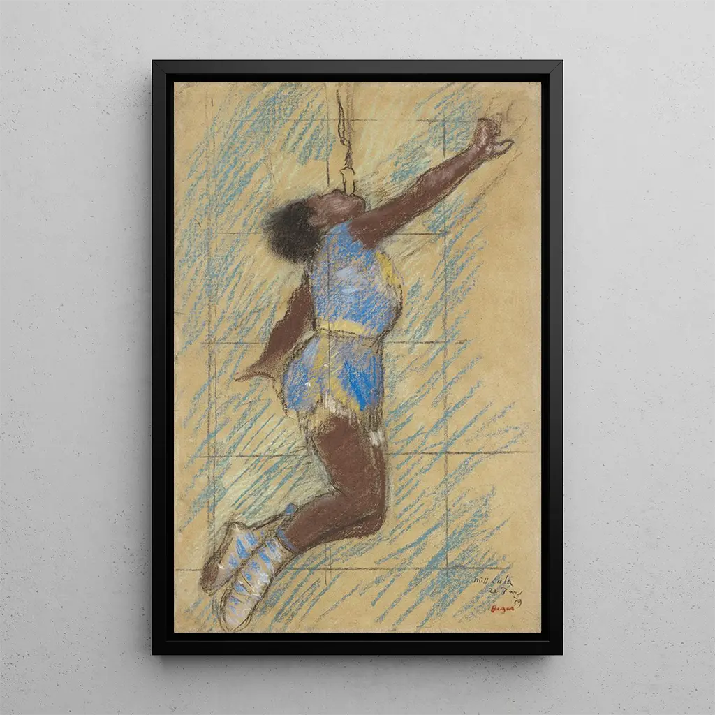 Miss Lala au cirque Fernando : een kunstdruk vol kleuren en beweging In "Miss Lala au cirque Fernando" vangt Edgar Degas de levendige energie van een circusvoorstelling, met de beroemde acrobaat in de hoofdrol. Het doek, rijk aan heldere kleuren en dynamische bewegingen, brengt de kijker naar het hart van het evenement. De gracieuze gebaren van Miss Lala, benadrukt door Degas' pasteltechniek, creëren een feestelijke en opwindende sfeer. Het contrast tussen licht en schaduw geeft diepte aan de scène, een eerbetoon aan de schoonheid van het bewegende lichaam en de kunst van het circus, terwijl het oog van de kunstenaar voor details duidelijk wordt. Edgar Degas : een pionier van het impressionisme en de moderniteit Edgar Degas, geboren in 1834, wordt vaak geassocieerd met de impressionistische beweging, hoewel hij een eigen stijl ontwikkelde die realisme en innovatie combineert. Zijn kunstwerken, beïnvloed door fotografie en japonisme, verkennen diverse thema's zoals dans, circus en dagelijks leven. "Miss Lala au cirque Fernando" is emblematisch voor zijn unieke aanpak, waarin hij de essentie van beweging en emotie weet vast te leggen. Dit kunstwerk getuigt van zijn interesse in artistieke optredens en zijn wens om de moderniteit van zijn tijd te vertegenwoordigen. Een decoratieve kunstdruk met meerdere voordelen De kunstdruk van "Miss Lala au cirque Fernando" is een gedurfde decoratieve keuze die een vleugje originaliteit aan uw interieur zal toevoegen. Of het nu in een woonkamer, speelkamer of kantoor is, deze kunstdruk zal de aandacht van uw gasten trekken. De afdrukkwaliteit garandeert een goede weergave van de kleuren en details van het originele kunstwerk, terwijl het een artistieke dimensie aan uw ruimte toevoegt. Deze kunstdruk cadeau doen betekent de energie van het circus en de magie van Edgar Degas' kunst in uw dagelijks leven brengen, waardoor een levendige en inspirerende sfeer ontstaat.