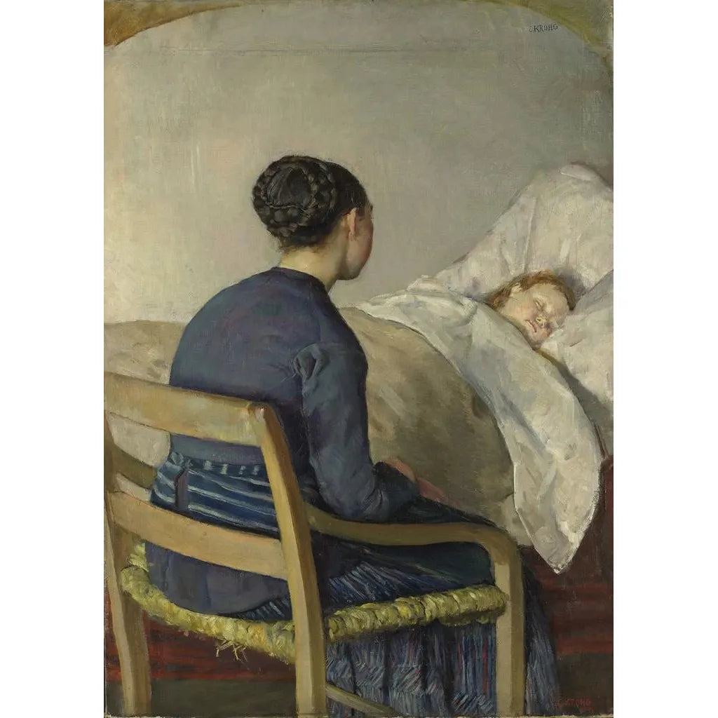 Kunstdruk Moeder aan het bed van haar kind - Christian Krohg | Kunstdruk