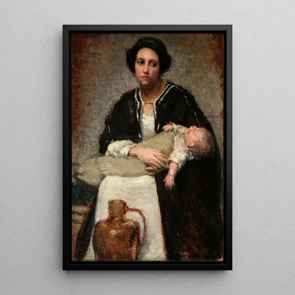 "Moeder en slapend kind" van Alice Pike Barney is een ontroerend kunstwerk dat de schoonheid van familiale banden illustreert. Dit schilderij, vervaardigd met opmerkelijke fijnheid, toont een moeder die liefdevol toekijkt op haar slapende kind. De zachte kleuren en de ronde vormen creëren een sfeer van vrede en veiligheid. Het zachte licht dat de personages omhult, versterkt het gevoel van warmte en intimiteit. Barney slaagt erin een vluchtig moment van tederheid te vereeuwigen, waardoor elke kijker wordt uitgenodigd de onvoorwaardelijke liefde van een moeder voor haar kind te voelen.