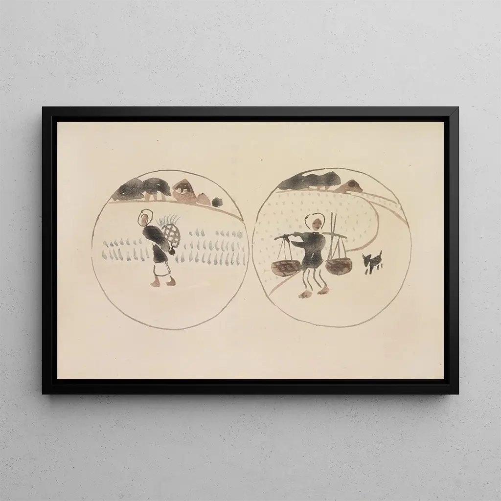 De kunstdruk Mokugo zuansh Pl08 van Asai Chū roept een wereld op waarin de natuur samensmelt met abstractie. De delicate nuances van groen en blauw vloeien samen met gouden accenten, waardoor een rustgevende en contemplatieve sfeer ontstaat. De inkt op papier-techniek, typisch voor de Japanse kunst, stelt de kunstenaar in staat te spelen met licht en schaduw, waardoor een dromerig landschap tot leven komt. Elk element van de compositie lijkt te dansen, en nodigt de kijker uit zich onder te dompelen in deze poëtische scène waarin de tijd lijkt stil te staan.