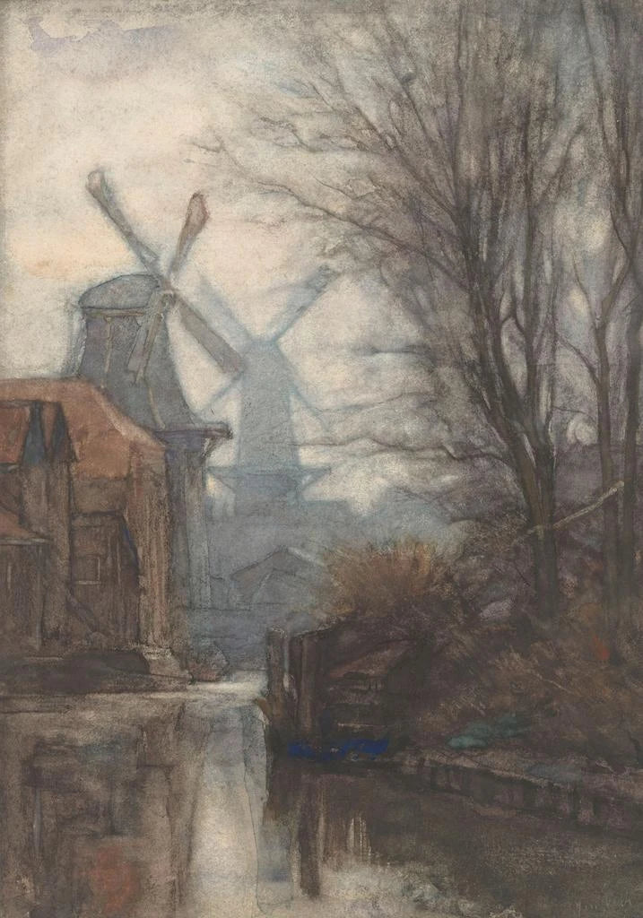 Schilderij Moulins le long d'un canal - Jan Veth | Kunstdruk