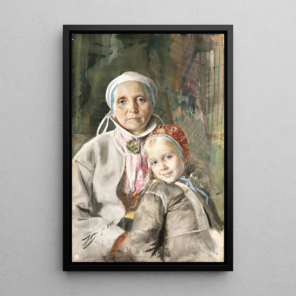 Anders Zorn, Zweedse kunstschilder uit de 19e eeuw, staat bekend om zijn vermogen om licht en textuur in zijn kunstdrukken vast te leggen. Geïnspireerd door de impressionistische beweging, ontwikkelde hij een unieke stijl die realisme en impressionisme combineert. Zorn reisde door Europa, geïnspireerd door de landschappen en culturen die hij ontmoette. Zijn beheersing van portretten bracht hem internationale bekendheid, en hij werd gevraagd door vooraanstaande persoonlijkheden van die tijd, wat zijn status als onmisbare kunstenaar versterkte. Via werken zoals "Mona en Karin" biedt hij een inkijk in het dagelijks leven en viert hij tegelijkertijd de vrouwelijke schoonheid.