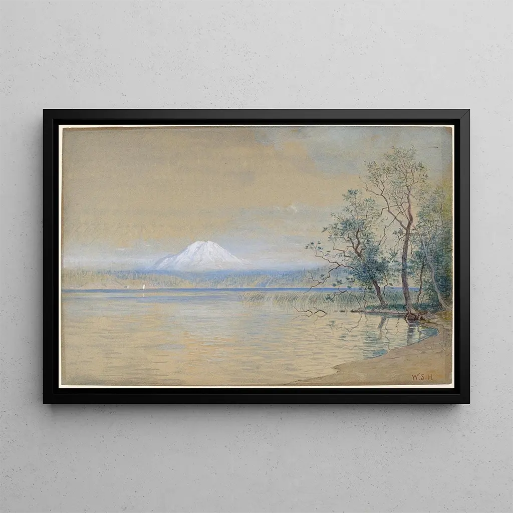 De kunstdruk Mont Tacoma, gemaakt door William Stanley Haseltine, brengt ons naar een adembenemend landschap waar de natuur zich uitdrukt met kracht en subtiliteit. De nuances van blauw en groen mengen harmonieus, en roepen de sereniteit op van de besneeuwde toppen en het weelderige groen van de valleien. De olieverftechniek maakt het mogelijk om het licht bijna tastbaar weer te geven, waardoor een sfeer van rust en verwondering ontstaat. Elke penseelstreek lijkt de essentie van deze iconische plek vast te leggen en nodigt de kijker uit tot meditatieve contemplatie.