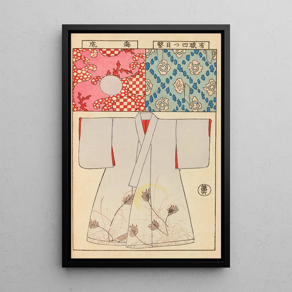 De kunstdruk Moyo bijutsu benran Pl08 onderscheidt zich door zijn heldere kleurenpalet en patronen geïnspireerd op flora en fauna. Dit werk roept een gevoel van lichtheid en beweging op, alsof de afgebeelde elementen onder onze ogen tot leven komen. De verfijnde techniek van de kunstenaar, gebruikmakend van delicate inkt, maakt het mogelijk om subtiele nuances te creëren die diepte toevoegen aan elk detail. Bij het bekijken van dit doek voelt men een diepe verbinding met de natuur, een uitnodiging om haar vergankelijke schoonheid te waarderen.