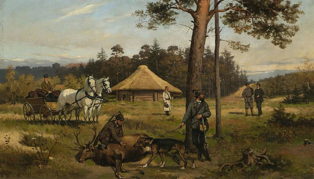 Après la chasse au cerf : une scène de vie empreinte de sérénité Après la chasse au cerf, œuvre captivante de Tadeusz Ajdukiewicz, nous invite à contempler un moment de calme après l'effervescence d'une chasse. La composition met en scène des personnages, entourés d'une nature luxuriante, où les teintes terreuses et verdoyantes se mêlent pour créer une atmosphère paisible. Les détails minutieux des costumes et des expressions des protagonistes ajoutent une dimension humaine à cette scène, tandis que la lumière douce qui filtre à travers les arbres renforce le sentiment de tranquillité. Ajdukiewicz réussit à capturer l’essence d’un instant suspendu, où la nature et l’homme coexistent harmonieusement. Tadeusz Ajdukiewicz : un artiste au cœur de la tradition polonaise Tadeusz Ajdukiewicz, né en 1880 en Pologne, est un peintre dont l'œuvre s'inscrit dans la tradition artistique polonaise du début du XXe siècle. Influencé par le réalisme et l'impressionnisme, il se spécialise dans la représentation de scènes de la vie quotidienne, souvent inspirées par la nature et la culture de son pays. Ses œuvres, comme Après la chasse au cerf, témoignent d'une sensibilité particulière pour les paysages et les interactions humaines. Ajdukiewicz a su capturer l'âme de son époque, faisant de lui un artiste respecté et admiré dans le monde de l'art. Une acquisition décorative aux multiples atouts La reproduction d'Après la chasse au cerf est un ajout précieux à toute décoration intérieure, qu'il s'agisse d'un salon, d'un bureau ou d'une chambre. Sa qualité d'impression assure une fidélité remarquable aux nuances et aux détails de l'œuvre originale, permettant d'apprécier pleinement la beauté de cette scène. Avec son attrait esthétique et son ambiance apaisante, ce tableau apporte une touche de sophistication et de sérénité à votre espace. Offrez-vous l'opportunité d'intégrer cette œuvre d'art dans votre quotidien et laissez-vous séduire par son charme intemporel.