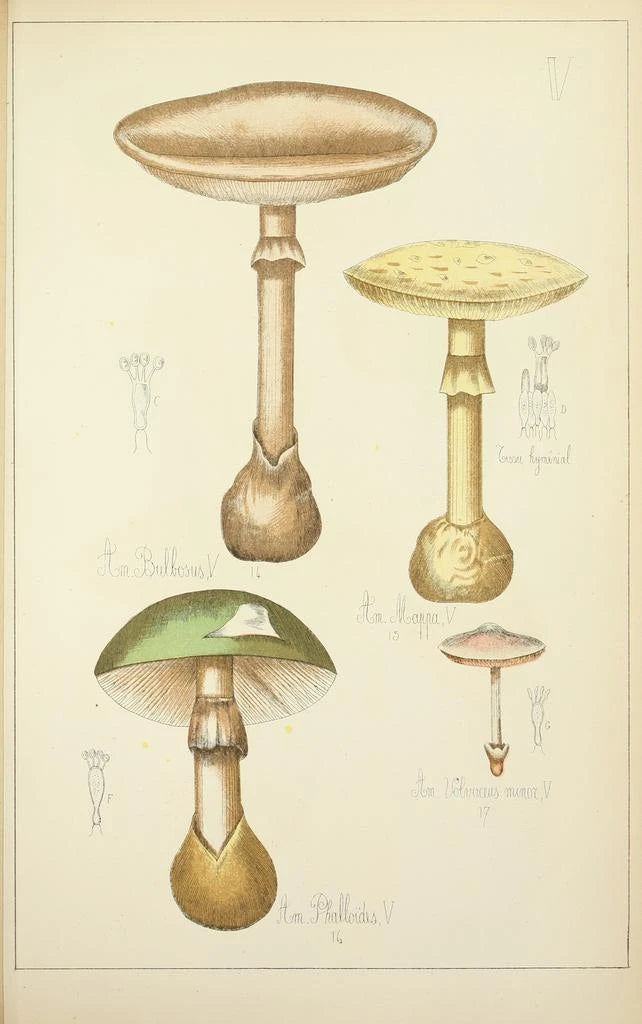 Histoire naturelle des champignons Pl05 : une exploration des formes et des couleurs