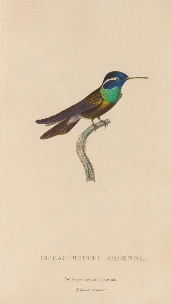 René Primevère Lesson, actief in de 19e eeuw, wordt erkend voor zijn vernieuwende benadering van ornithologische illustratie. Zijn wetenschappelijke opleiding, gecombineerd met zijn artistiek talent, stelde hem in staat werken te produceren die de eenvoudige illustratie overstijgen. Geïnspireerd door de naturalistische verkenningen van zijn tijd, wist hij de schoonheid van de kolibries met opmerkelijke precisie vast te leggen. Zijn werken, waaronder Histoire naturelle des oiseaux-mouches Pl09, zijn uitgegroeid tot referenties voor zowel kunstliefhebbers als wetenschappers, en getuigen van de interactie tussen kunst en natuur.