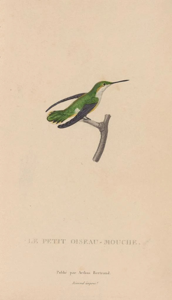 René Primevère Lesson, naturalist en illustrator, markeerde de 19e eeuw met zijn bijdragen aan de ornithologie. Zijn passie voor vogels en zijn artistiek talent brachten hem ertoe werken te maken die wetenschap en esthetiek combineren. Geïnspireerd door de ontdekkingsreizen van zijn tijd, reisde hij naar verre landen en documenteerde zeldzame en exotische soorten. Zijn werk, dat vaak wordt beschouwd als een referentiegebied, heeft het publiek bewust gemaakt van de schoonheid en de kwetsbaarheid van biodiversiteit. Histoire naturelle des oiseaux-mouches Pl55 is een van zijn emblematische kunstwerken, dat getuigt van zijn betrokkenheid bij de natuur.