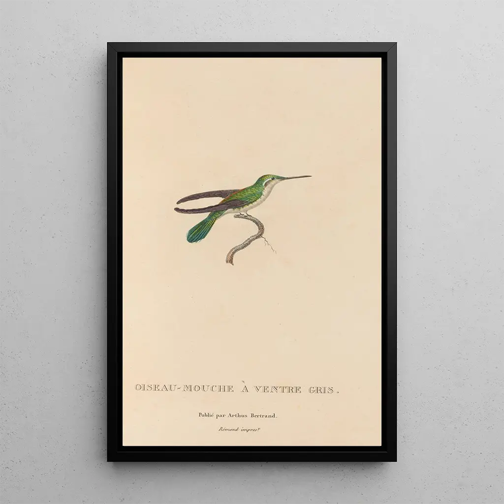 De kunstdruk Histoire naturelle des oiseaux-mouches Pl80 onthult een fascinerende wereld waarin de diversiteit van vogelmouches in de schijnwerpers staat. Elke vogel wordt afgebeeld met opmerkelijke precisie, zijn levendige kleuren en delicate vormen springen eruit op een harmonieuze achtergrond. De graveertechniek van René Primevère Lesson stelt niet alleen de fysieke verschijning van de vogels vast, maar ook hun essentie, waardoor een levendige en dynamische sfeer ontstaat. Dit schilderij is een ware ode aan de schoonheid van de natuur, uitnodigend tot contemplatie en verwondering.