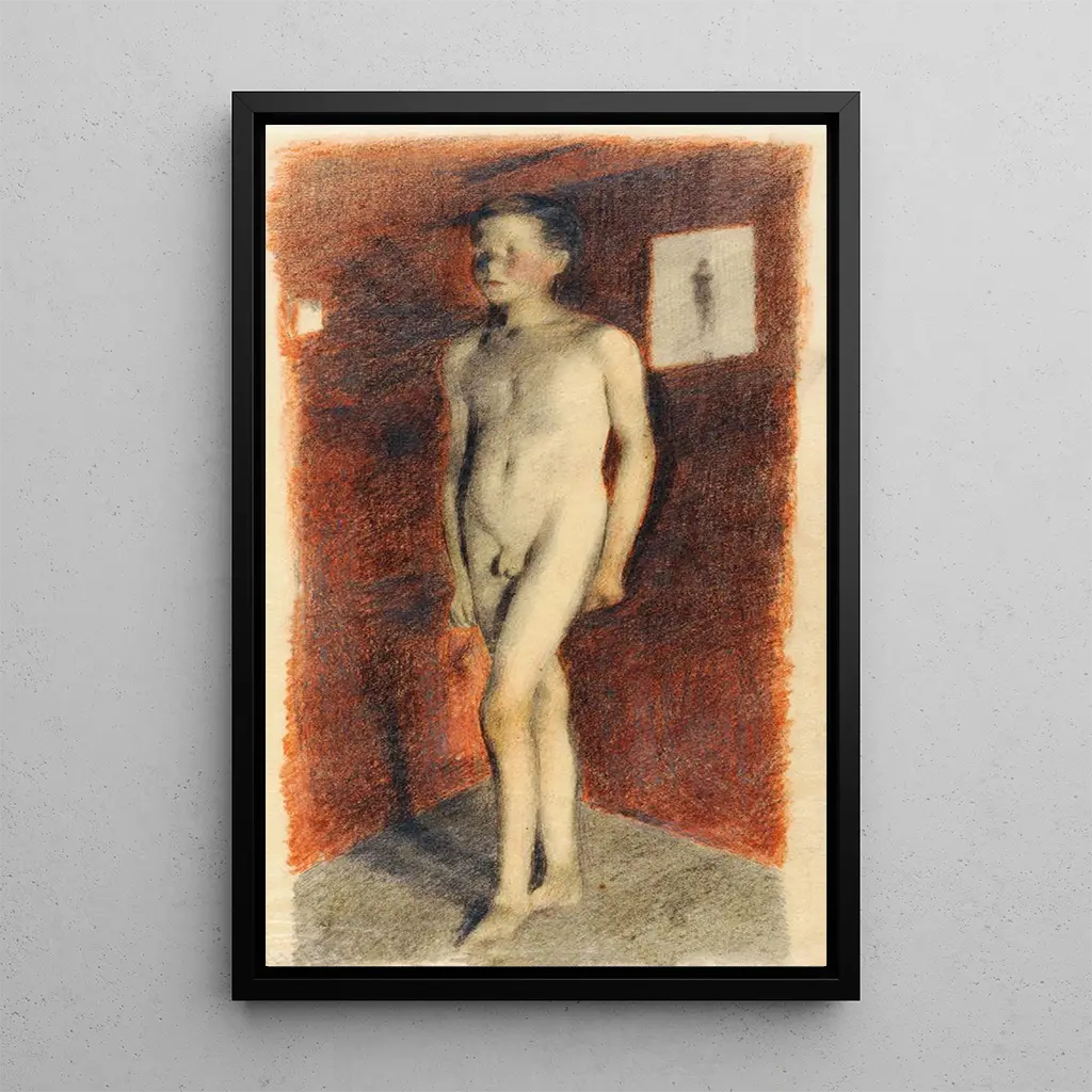 Nu de jongen naturalist: een viering van de jeugdige schoonheid De "Nu de jongen naturalist" van Otto Meyer-Amden is een kunstdruk die de schoonheid en zuiverheid van de kindertijd viert. Dit schilderij, doordrenkt met realisme, vangt de natuurlijke gratie van een jonge jongen in een ontspannen houding. De nuances van huid, delicieus bewerkt, benadrukken de textuur van de huid en het licht dat het lichaam streelt. De compositie, zowel eenvoudig als krachtig, roept een intimiteit op die uitnodigt tot contemplatie. De techniek van Meyer-Amden, die precisie en gevoeligheid combineert, geeft dit werk een warme en emotionele sfeer. Otto Meyer-Amden: een kunstenaar met een hart voor expressionisme Otto Meyer-Amden, geboren in 1885, is een Zwitserse kunstenaar wiens werk binnen de stroming van het expressionisme valt. Zijn carrière, gekenmerkt door diverse invloeden, getuigt van een voortdurende zoektocht naar authenticiteit en emotie. Meyer-Amden heeft zich weten te vestigen in het artistieke landschap van zijn tijd, met thema's zoals natuur, spiritualiteit en de menselijke conditie. Zijn naturalistische aanpak, die geworteld is in zijn tijd, onthult een unieke gevoeligheid die nog steeds kunstenaars uit de moderne tijd inspireert. Zijn artistieke nalatenschap blijft een referentie voor degenen die de schoonheid in al haar vormen willen uitdrukken. Een decoratief kunstdruk met vele voordelen De kunstdruk van de "Nu de jongen naturalist" is een stuk dat je leefruimte verrijkt. Of het nu in een woonkamer, kantoor of slaapkamer is, dit schilderij brengt een vleugje elegantie en zachtheid. De kwaliteit van de kunstdruk garandeert een nauwkeurigheid in details en kleuren van het originele werk, terwijl het een onmiskenbare esthetische aantrekkingskracht biedt. Door deze doek in je inrichting te integreren, creëer je een inspirerende omgeving, bevorderlijk voor reflectie en ontsnapping, en vier je de schoonheid van de kindertijd.